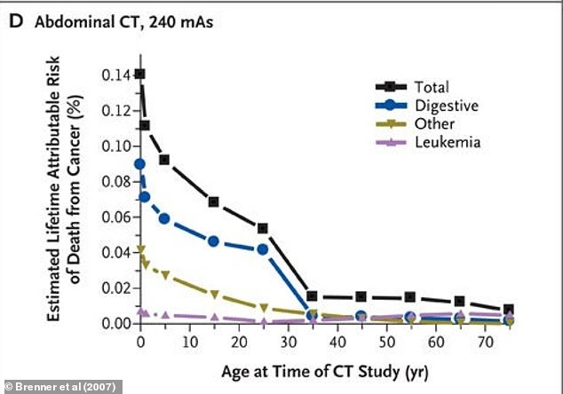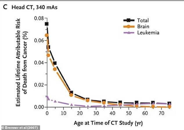 The greatest risks were observed in individuals who had undergone a CT scan before their first birthday.